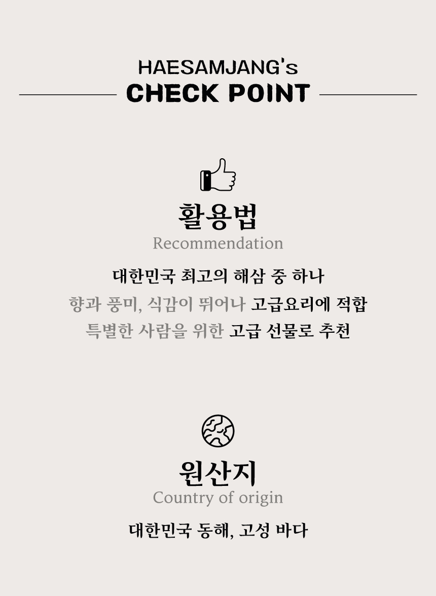 대한민국 최고의 진귀한 해삼 중 하나입니다.