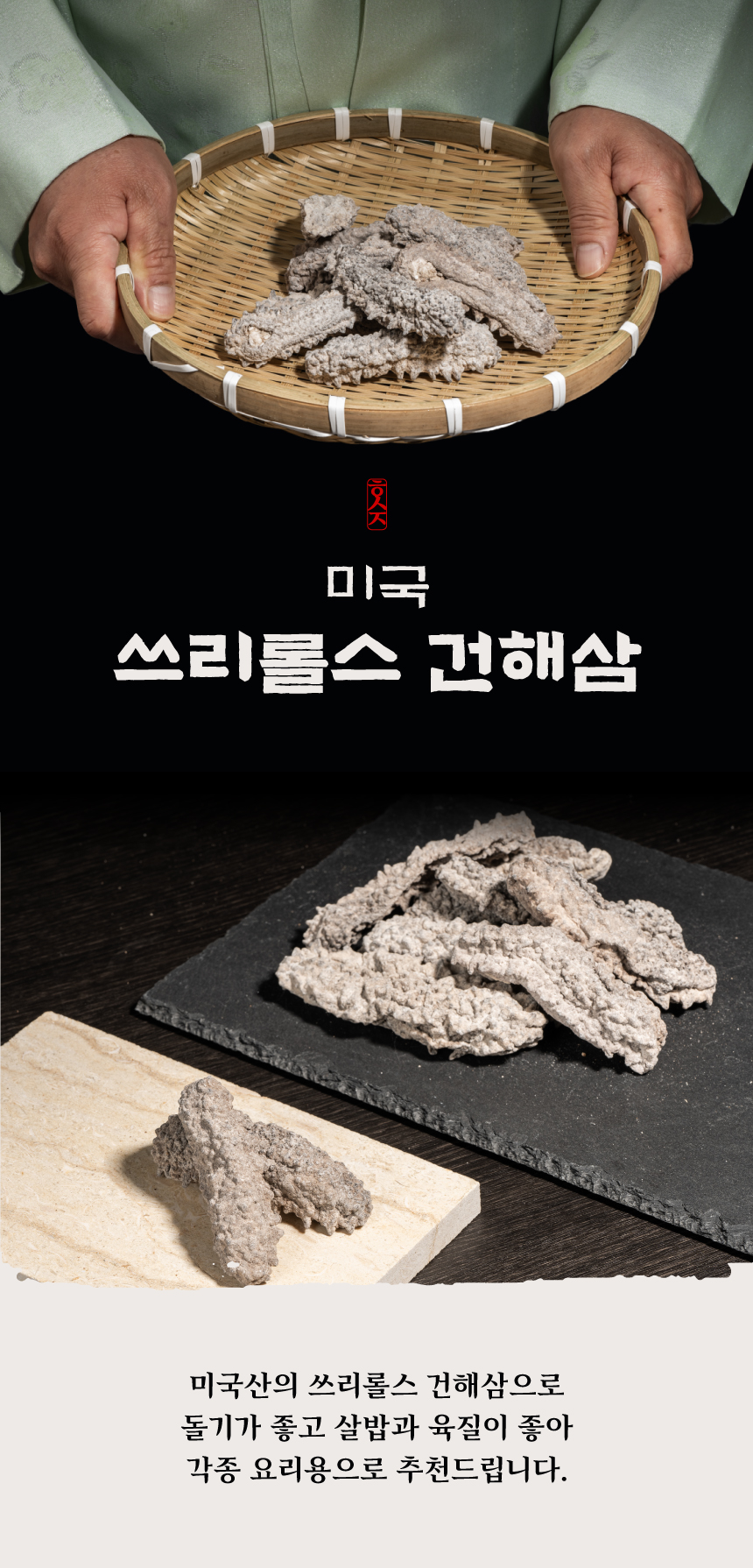 멕시코 돌기해삼이며 미국에서 건조 가공된 제품.