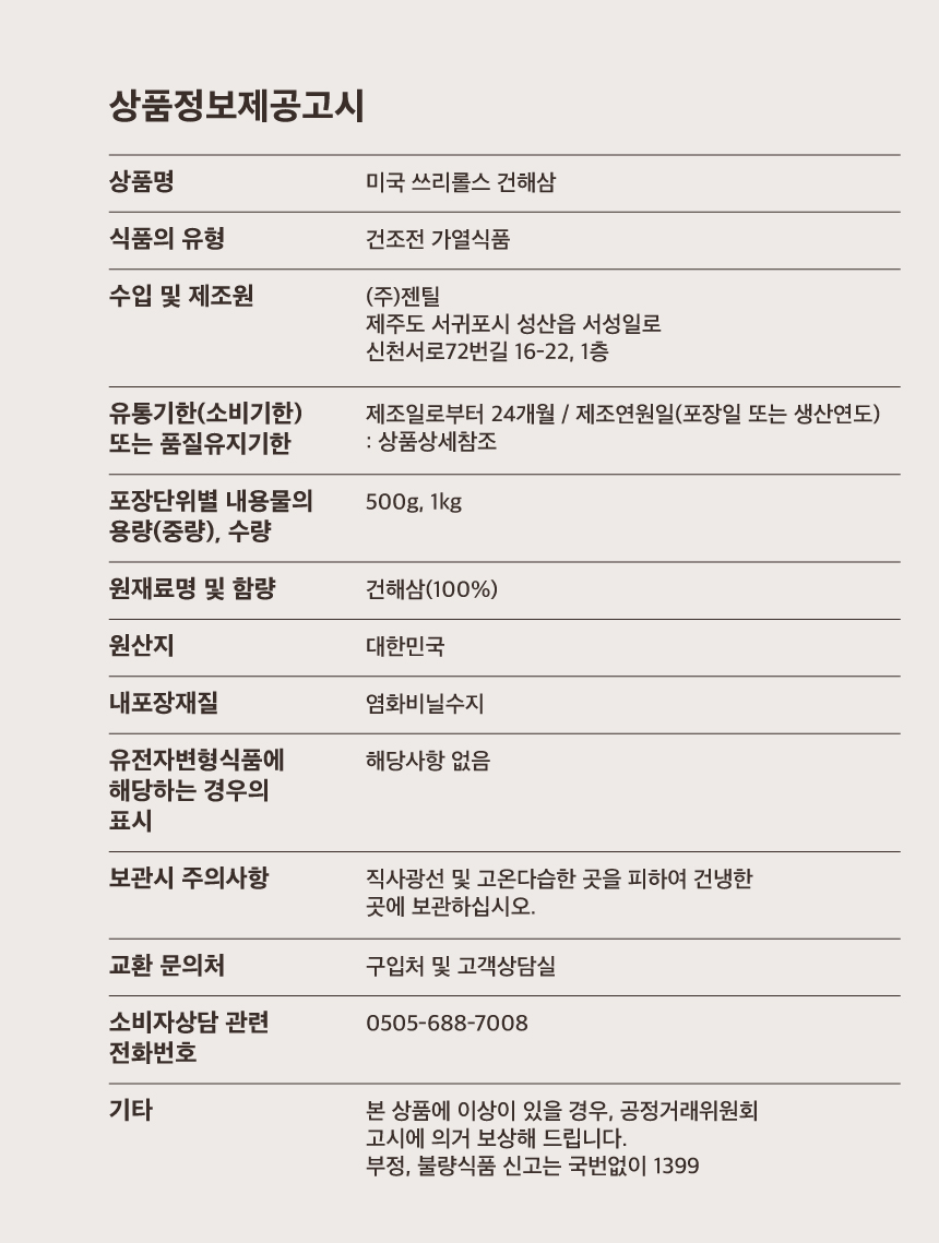 미국 쓰리롤스 건해삼