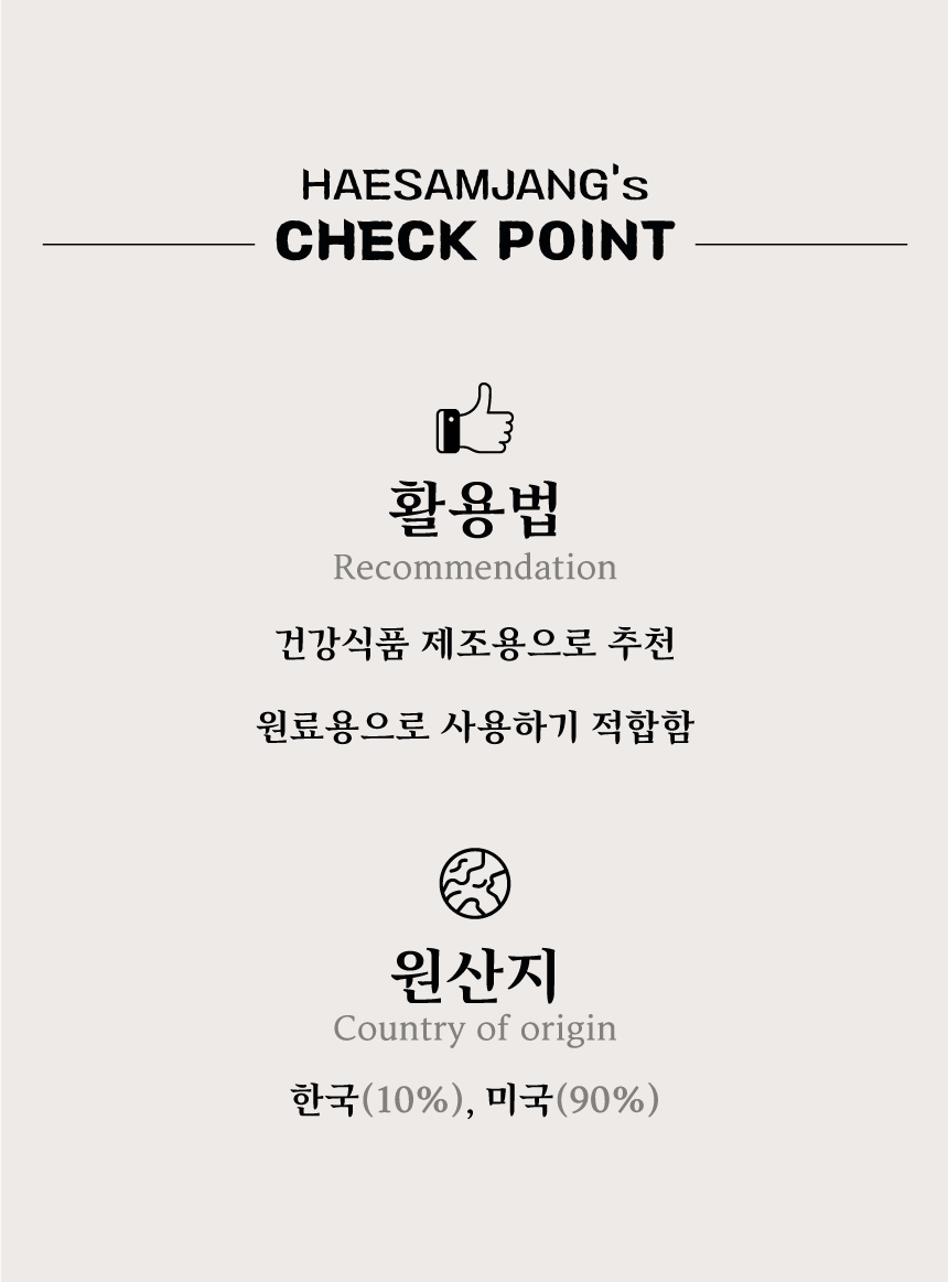 건강식품 제조 및 원료용으로 사용하기 적합합니다.